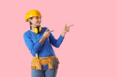 Kobieta stolarz na kolorowym tle