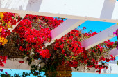 różowy kwitnący bugenwilli z niebieski niebo jako tło