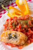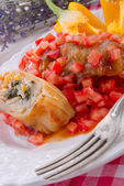 Zdjęcie "Gołąbki wegetariańskie ze szpinakiem i salsy" może być wykorzystywane do celów osobistych i komercyjnych zgodnie z warunkami zakupionej licencji Royalty-free. Obraz jest dostępny do pobrania w jakości wysokiej rozdzielczości do 5760x3840.