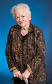 uśmiechający się stare kobiety stojącej z trzciny cukrowej