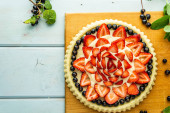 Zdjęcie "Ciasto z jagodami ciasto z truskawkami i czarne porzeczki na niebieskim rustykalnym stole." może być wykorzystywane do celów osobistych i komercyjnych zgodnie z warunkami zakupionej licencji Royalty-free. Obraz jest dostępny do pobrania w jakości wysokiej rozdzielczości do 5760x3840.