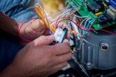 Zdjęcie "Technika montażu i testowania silnika Automatyczna brama do domowego systemu bezpieczeństwa." może być wykorzystywane do celów osobistych i komercyjnych zgodnie z warunkami zakupionej licencji Royalty-free. Obraz jest dostępny do pobrania w jakości wysokiej rozdzielczości do 5760x3840.