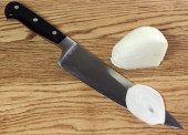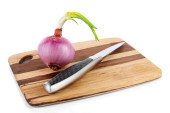cebulę pokroić z pierścieniami na desce na białym tle