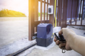 Zdjęcie "Sygnał zdalnego sterowania przy otwarciu automatycznej bramy w systemie domu." może być wykorzystywane do celów osobistych i komercyjnych zgodnie z warunkami zakupionej licencji Royalty-free. Obraz jest dostępny do pobrania w jakości wysokiej rozdzielczości do 5760x3840.