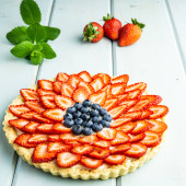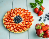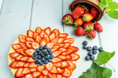 Zdjęcie "Ciasto z jagodami ciasto z truskawek i jagód na niebieskim rustykalnym stole." może być wykorzystywane do celów osobistych i komercyjnych zgodnie z warunkami zakupionej licencji Royalty-free. Obraz jest dostępny do pobrania w jakości wysokiej rozdzielczości do 5760x3840.