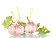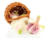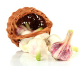 świeżego czosnku, na maty wiklinowe, na białym tle