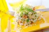 świeże sałatki z kurczakiem i warzywami gotowanymi
