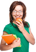 Zdjęcie "młody student dziewczyna trzyma książki i jabłko" może być wykorzystywane do celów osobistych i komercyjnych zgodnie z warunkami zakupionej licencji Royalty-free. Obraz jest dostępny do pobrania w jakości wysokiej rozdzielczości do 5760x3840.