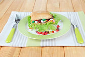 smaczne chebureks ze świeżych ziół na talerzu, na tle drewniane