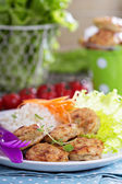 smaczne chebureks ze świeżych ziół na talerzu, drewniany stół, na jasnym tle