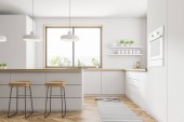 Zdjęcie "Wnętrze kuchni białego i drewnianego, licznik i stół" może być wykorzystywane do celów osobistych i komercyjnych zgodnie z warunkami zakupionej licencji Royalty-free. Obraz jest dostępny do pobrania w jakości wysokiej rozdzielczości do 5760x3840.