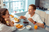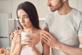 Zdjęcie "Uśmiechnięta żona przynosząc kawę dla senny mąż" może być wykorzystywane do celów osobistych i komercyjnych zgodnie z warunkami zakupionej licencji Royalty-free. Obraz jest dostępny do pobrania w jakości wysokiej rozdzielczości do 5760x3840.