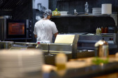 Zdjęcie "gotować stoi z tyłu, gotowanie w nowoczesnej kuchni, w restauracji. niski przycisk. Kopiuj miejsce dla tekstu" może być wykorzystywane do celów osobistych i komercyjnych zgodnie z warunkami zakupionej licencji Royalty-free. Obraz jest dostępny do pobrania w jakości wysokiej rozdzielczości do 5760x3840.