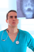 kaukaski lekarz mężczyzna trzyma xrays