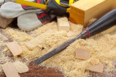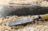 strużyny, zrębki drzewne i narzędzia do obróbki drewna