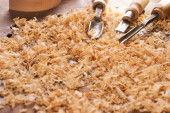 strużyny, zrębki drzewne i narzędzia do obróbki drewna
