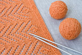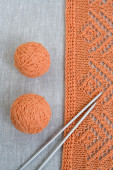pomarańczowe kulki, z dzianiny wzór i iglice