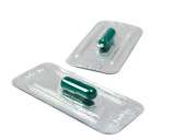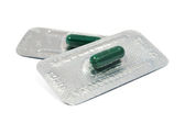 blister zielony kapsułka microgranules na białym tle