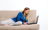 spanie na komputerze kobieta