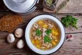 Zdjęcie "Kharcho rosół z mięsa i ryżu na drewnianym stole" może być wykorzystywane do celów osobistych i komercyjnych zgodnie z warunkami zakupionej licencji Royalty-free. Obraz jest dostępny do pobrania w jakości wysokiej rozdzielczości do 5760x3840.