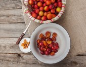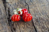 Rolnictwo ekologiczne. ACEROLA wiśnia, Barbados Cherry, zachód Indian Cherry. Owoce tropikalne o wysokiej zawartości witaminy C.