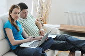 Młoda para działa na laptopie w domu
