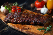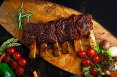 Stek z wołowiny BBQ podawany z gorącą papryczką chili i świeżych pomidorów z góry na dół