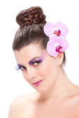 sztuka brunetka dziewczynka z flora