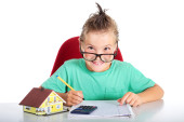 dziewczynka robi swoją pracę domową, siedzi przy stole