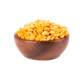 drewniane miski pełne ziarna kukurydzy żółty suszone