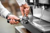Ekspres do kawy i kawiarnia przygotowują kawę w kawiarni