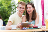 Zdjęcie "Młoda para z cyfrowy tablicowy" może być wykorzystywane do celów osobistych i komercyjnych zgodnie z warunkami zakupionej licencji Royalty-free. Obraz jest dostępny do pobrania w jakości wysokiej rozdzielczości do 5760x3840.