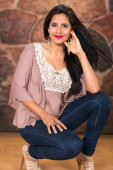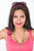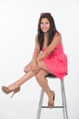 kobieta w różowej sukience