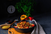 Tajin gulasz wołowy z ryżem papryka i nasiona sezamu