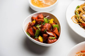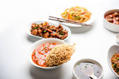 Zdjęcie "Różne Indo chińskich potraw w grupie obejmuje Schezwan/Szechuan Hakka Noodles, VEG smażony ryż, VEG Manchurian, American CHOP SUEY, chilli Paneer, chrupiące zupa warzywna i warzywna" może być wykorzystywane do celów osobistych i komercyjnych zgodnie z warunkami zakupionej licencji Royalty-free. Obraz jest dostępny do pobrania w jakości wysokiej rozdzielczości do 5760x3840.