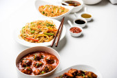 Zdjęcie "Różne Indo chińskich potraw w grupie obejmuje Schezwan/Szechuan Hakka Noodles, VEG smażony ryż, VEG Manchurian, American CHOP SUEY, chilli Paneer, chrupiące zupa warzywna i warzywna" może być wykorzystywane do celów osobistych i komercyjnych zgodnie z warunkami zakupionej licencji Royalty-free. Obraz jest dostępny do pobrania w jakości wysokiej rozdzielczości do 5760x3840.