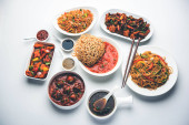 Zdjęcie "Różne Indo chińskich potraw w grupie obejmuje Schezwan/Szechuan Hakka Noodles, VEG smażony ryż, VEG Manchurian, American CHOP SUEY, chilli Paneer, chrupiące zupa warzywna i warzywna" może być wykorzystywane do celów osobistych i komercyjnych zgodnie z warunkami zakupionej licencji Royalty-free. Obraz jest dostępny do pobrania w jakości wysokiej rozdzielczości do 5760x3840.