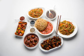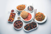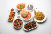 Zdjęcie "Różne Indo chińskich potraw w grupie obejmuje Schezwan/Szechuan Hakka Noodles, VEG smażony ryż, VEG Manchurian, American CHOP SUEY, chilli Paneer, chrupiące zupa warzywna i warzywna" może być wykorzystywane do celów osobistych i komercyjnych zgodnie z warunkami zakupionej licencji Royalty-free. Obraz jest dostępny do pobrania w jakości wysokiej rozdzielczości do 5760x3840.