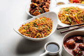 Zdjęcie "Różne Indo Chinese Food w grupie obejmuje Schezwan/Szechuan Hakka Noodles, VEG smażony ryż, VEG Manchurian, American CHOP SUEY, chilli Paneer, chrupiące zupa warzywna i warzywna" może być wykorzystywane do celów osobistych i komercyjnych zgodnie z warunkami zakupionej licencji Royalty-free. Obraz jest dostępny do pobrania w jakości wysokiej rozdzielczości do 5760x3840.