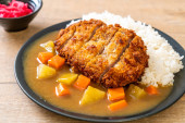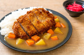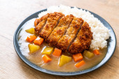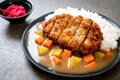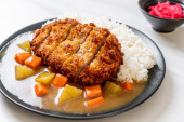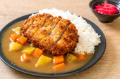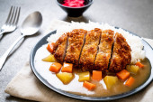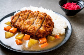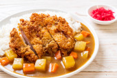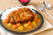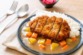 Zdjęcie "Chrupiące kotlet smażony z curry i ryżu " może być wykorzystywane do celów osobistych i komercyjnych zgodnie z warunkami zakupionej licencji Royalty-free. Obraz jest dostępny do pobrania w jakości wysokiej rozdzielczości do 5760x3840.