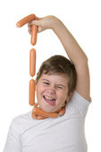 Zdjęcie "zaskoczony chłopak posiada kiełbasy w usta" może być wykorzystywane do celów osobistych i komercyjnych zgodnie z warunkami zakupionej licencji Royalty-free. Obraz jest dostępny do pobrania w jakości wysokiej rozdzielczości do 5760x3840.