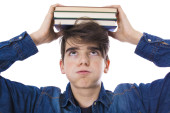 Zdjęcie "nastolatek posiada kilka książek na głowę" może być wykorzystywane do celów osobistych i komercyjnych zgodnie z warunkami zakupionej licencji Royalty-free. Obraz jest dostępny do pobrania w jakości wysokiej rozdzielczości do 5760x3840.