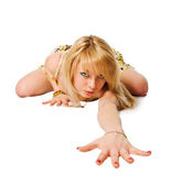 młoda kobieta szczupła na sobie biustonosz na białym tle