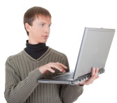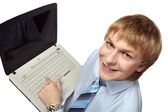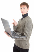 młody człowiek z laptopem