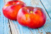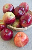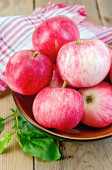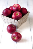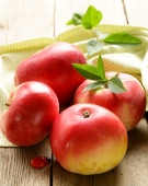 świeże dojrzałe czerwone jabłka na drewnianym stole