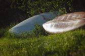 Proces montażu i naprawy kajaków: szkielet metalowy, skóra PVC, drewniane i aluminiowe ramy. Męskie ręce zebrać kajaki i pływanie łódką.