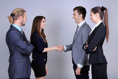 Zdjęcie "współpracownikami drżenie rąk na szarym tle" może być wykorzystywane do celów osobistych i komercyjnych zgodnie z warunkami zakupionej licencji Royalty-free. Obraz jest dostępny do pobrania w jakości wysokiej rozdzielczości do 5760x3840.