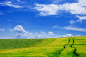 Zdjęcie "zielone pole i błękitne niebo obraz." może być wykorzystywane do celów osobistych i komercyjnych zgodnie z warunkami zakupionej licencji Royalty-free. Obraz jest dostępny do pobrania w jakości wysokiej rozdzielczości do 5760x3840.
