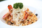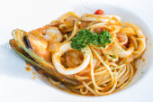 spaghetti owoce morza