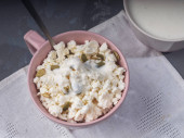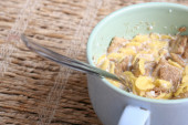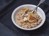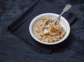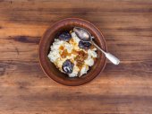 Śniadanie płatków owsianych quiche z nektarynami i cynamonem w płytce